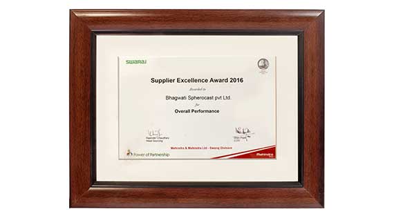 Won 7 Awards consecutively by Swaraj for supplier quality, performance and product development support.